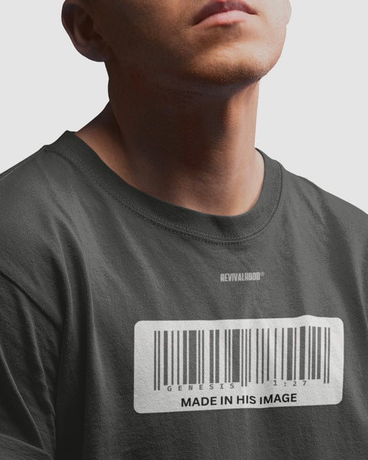 REVIVALHOOD® MADE IN HIS IMAGE BARCODE Oversized faded t-shirt